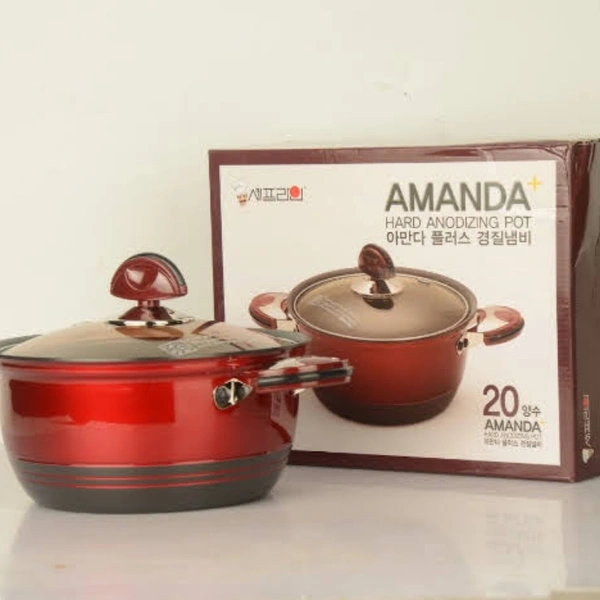 Body - Aluminum In Coating - Hard Anodizing Out Coating - Enamel Coating Handle and Knobs - Bakelite, Stainless Steel, Iron (Plated) Lid - Tempered Glass